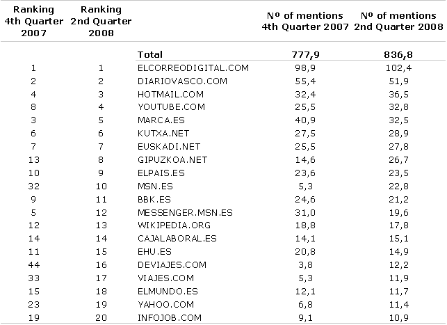 With regard to search engines, Internet users in the A.C. of the Basque Country prefer Google, which has ousted the other search engines. 97.5% of this collective, which stands at over 900,000 Internet user aged 15 and over, use Google, compared to 2% that resort to Yahoo and 0.2% to Terra. The number of people using Google has increased by 40,000 people in the second quarter of 2008.