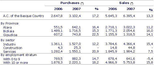 E-commerce in the A.C. of the Basque Country continued to grow both in economic terms and in the number of companies involved, according to data prepared by Eustat. The turnover generated in 2007 online or by means of other electronic systems, such as email, electronic data exchange (EDE), etc, stood at 6,395.4 million euros in terms of e-sales carried out and to 3,102.4 million with regard to purchases made.