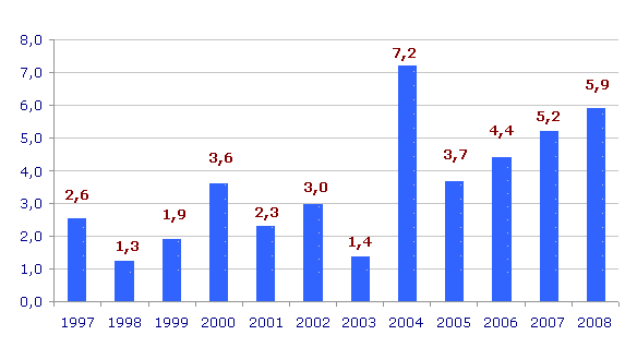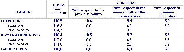 In December, the cost of raw materials in the Building and Civil Works sub-sectors evolved differently, with a 2.5% decrease compared to the previous month in Civil Works, while the costs of raw materials for Building remained steady (0.0%). Both sub-sectors recorded growth during the year, but at different intensities: raw material costs for Building was up 6.6%, whereas those of raw materials for Civil Works accumulated a 2.3% increase.