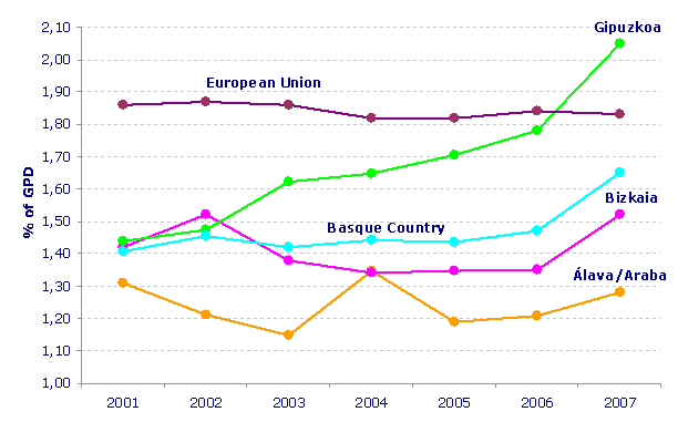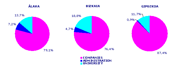 If only capital expenditure (investment in land, buildings, equipment and instruments) are considered, 212 million euros was invested, which was an average increase of 57% on the previous year. However, the distribution between the different provinces was uneven: it was up by 78% in Gipuzkoa, by 46% in Bizkaia and 28% in Álava.