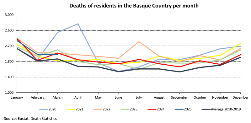 Deaths in the Basque Country rose by 1% in the first quarter of 2025
