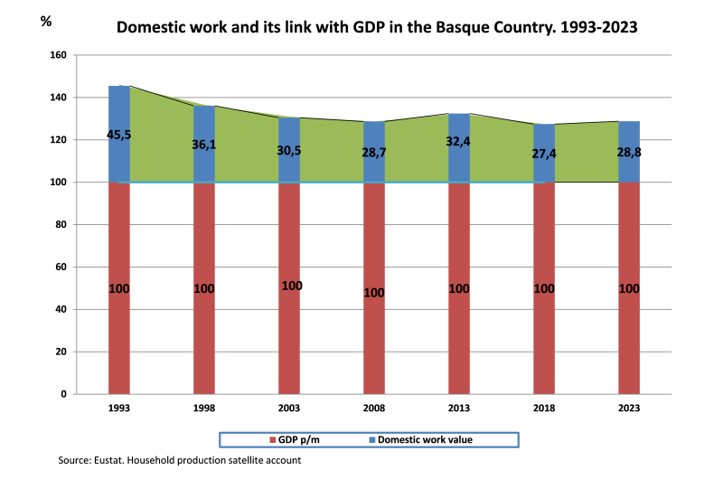 Unpaid domestic work represented 28.8% of GDP in the Basque Country in 2023